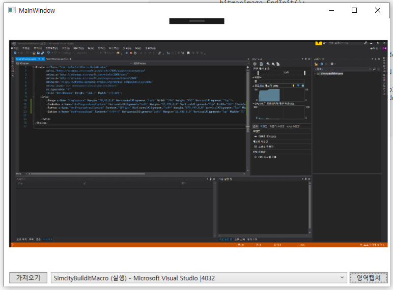 <Button x:Name="btnProgramAreaCapture" Content="영역캡쳐" HorizontalAlignment="Left" Margin="679,499,0,0" VerticalAlignment="Top" Width="75" Height="22" RenderTransformOrigin="0.493,0.75" Click="BtnProgramAreaCapture_Click"/>