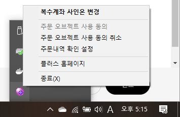 - 윈도우 작업표시줄에 보라색 아이콘인 "Cybos Plus"를 오른쪽 클릭한다.